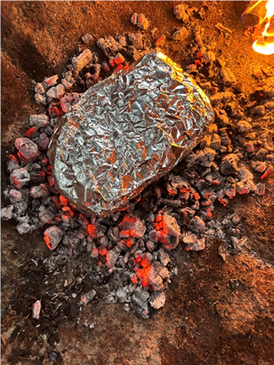 After about 30 minutes we removed the pot from the campfire and allowed it to cool for a few minutes.